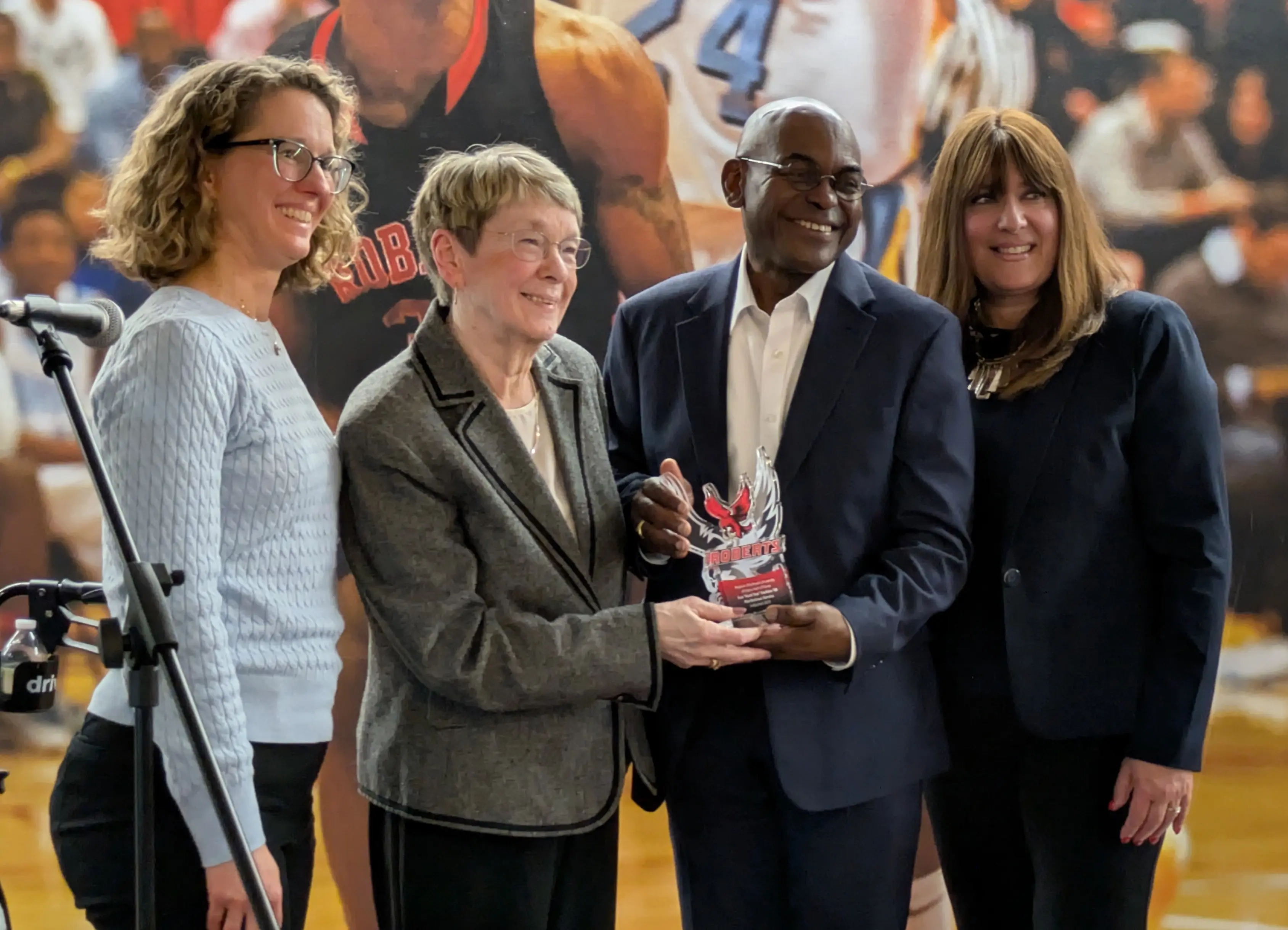 The ceremony took place during The Reggies, Roberts Athletics’ annual awards celebration, where student-athletes, alumni, coaches, and families gathered to honor both present achievements and lasting legacies. This year’s Athletic Hall of Fame inductees, Kendra Zaffuto and Susan “Aunt Sue” Harkins, represent two remarkable expressions of what it means to be a Redhawk.
