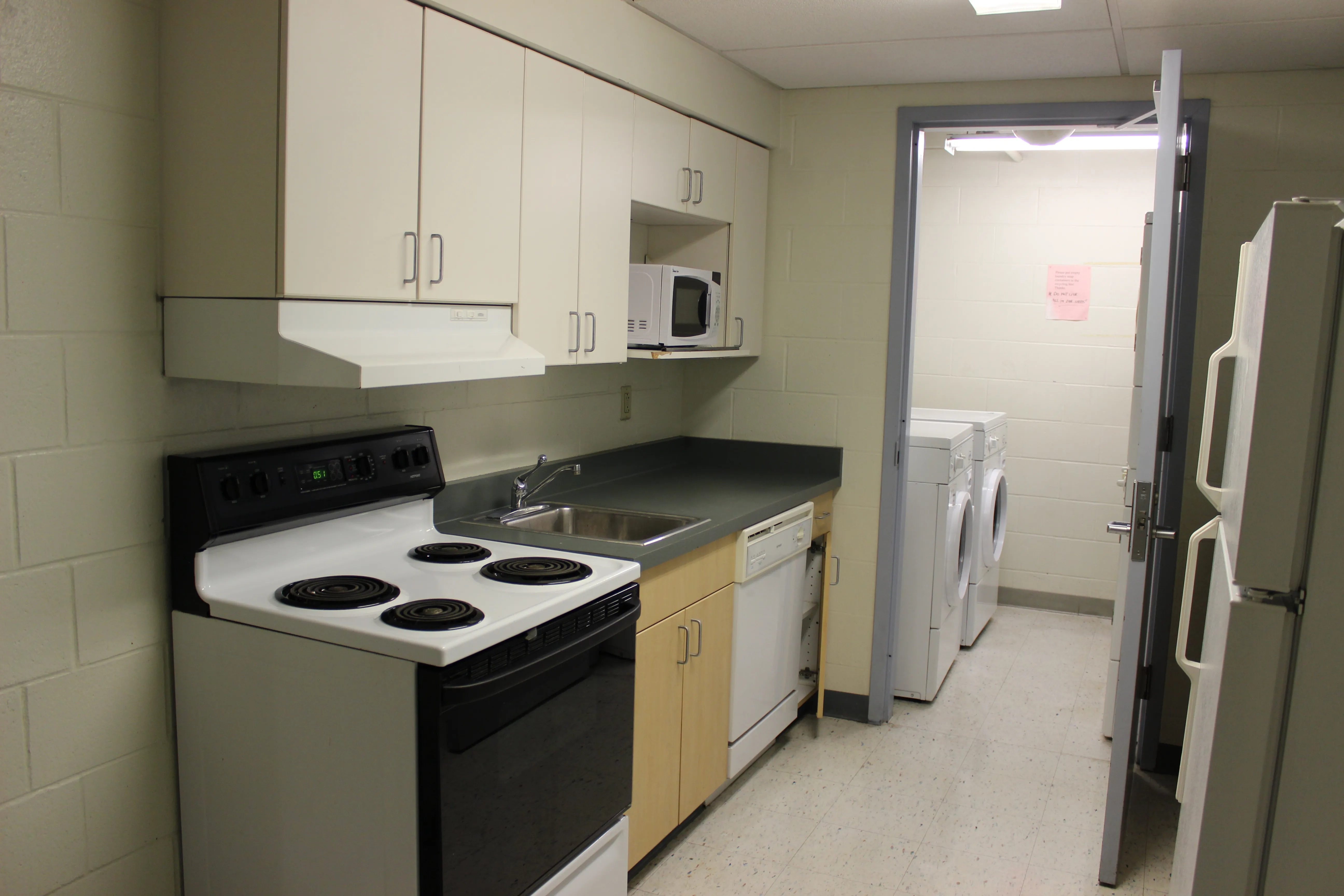 - Fully-equipped shared kitchens with a refrigerator, microwave, and stove